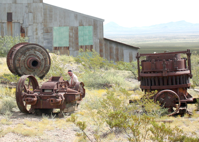 Several pieces of crushing/grinding equipment seen in the mill yard