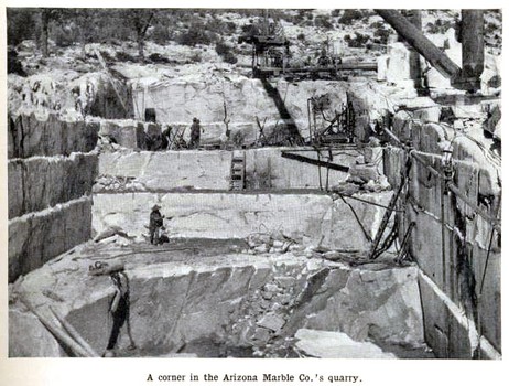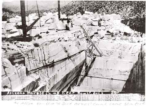 The old Arizona Marble Mining Company quarry is located in the northwestern corner of the Chiricahua Mountains in southeastern Arizona. The company started up in 1909 and was in full operation shortly thereafter. An article published in a 1913 issue of Mine and Quarry magazine provides some insight into the quarry operation during those early years.