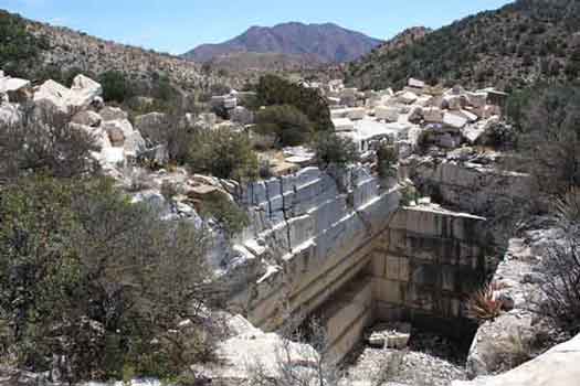 I had hiked into the old quarry in the early 1980's with several of my high school students. The route was along the old haulage road. At the quarry site, there were many blocks of marble that had been removed from the quarry and had been stacked for future processing. A few sawn panels were still in their racks. At that time, the wooden framework for the mill was still standing. The two power plant boilers were in place. There was very little if any other mill machinery still around.