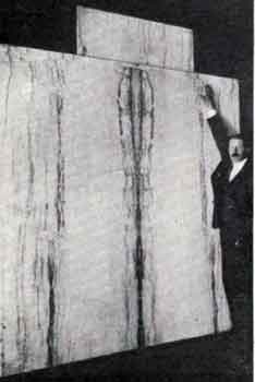A gang saw, rubbing table and polishing table were used to slab the blocks of marble into panels. Heavy duty wagons and a 110 horsepower traction engine were used to transport the blocks and panels of marble 14 miles to the north to a railroad station near Bowie. The average load per trip was 60 tons!
