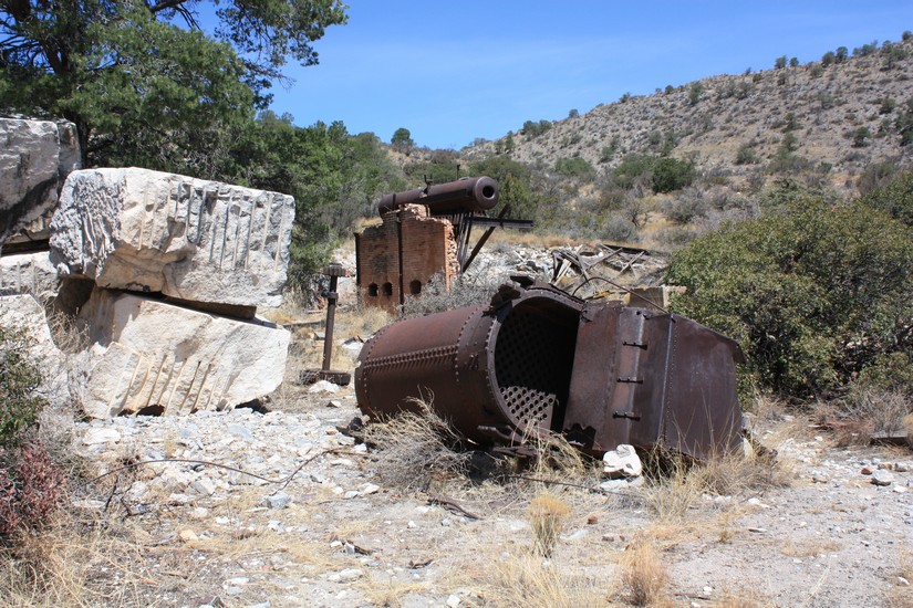 Quarried blocks showing evidence of drilling. The main power plant boilers in the background. Could the boiler in the front have been part of a traction engine?