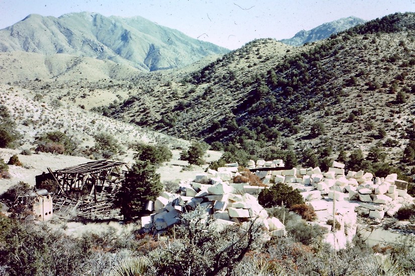 The boilers and mill building are to the left in the photo. Slightly to the right of center in the photo one of the logs that was part of one of the derricks can be seen.