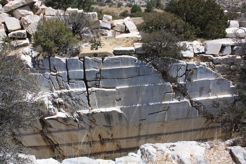 Comparison of the fractures in the quarry wall to the first photo above reveals that the cement pad in this photo was the base for the derrick in the foreground of that photo
