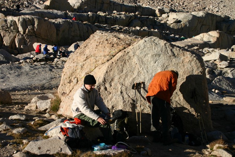 Breakfast break and equipment adjustment at Trail Camp. There were many backpackers here. This is 6.2 miles from the trailhead.