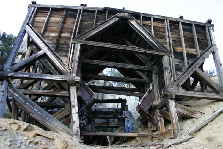Double ore bins that fed buckets on a tram line that ran down the hill to the mill.
