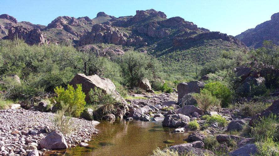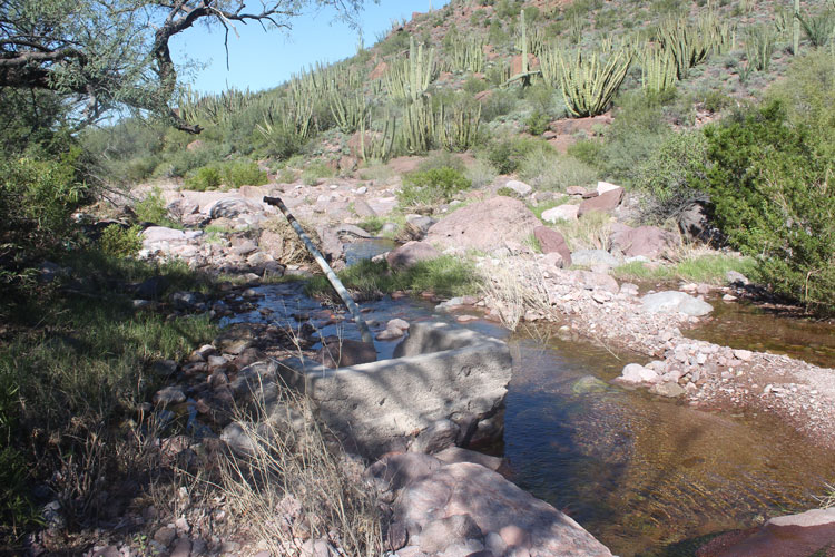 The first Anglo settlers in the canyon, the Millers, came here because there seemed to more water available than where they had lived in the Puerto Blanco Mountains to the west. This concrete structure was once a well that probably had a wind mill standing over it. When we were here in October, there was a nice stream of water flowing. The spadefoot toads were taking advantage and many of the pools were filled with tadpoles.