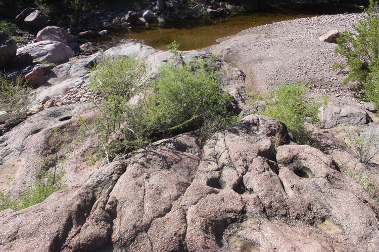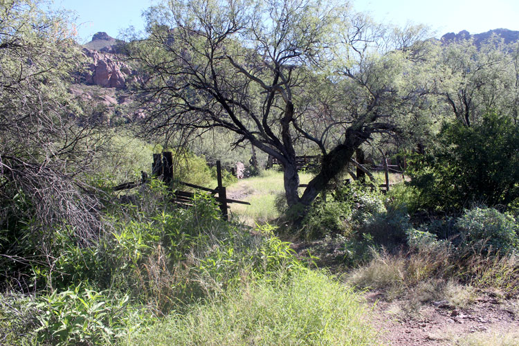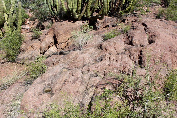 There is a set of rock mortars in a large rock formation across the wash from the old corral. The speculation is that these were Hohokam in origin.