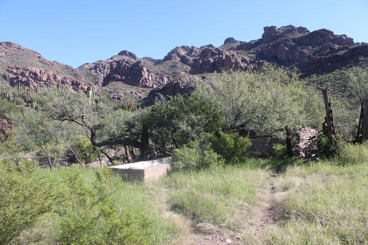 Upstream from the ruin of the old house are the remnants of a corral, water trough and a water tank.