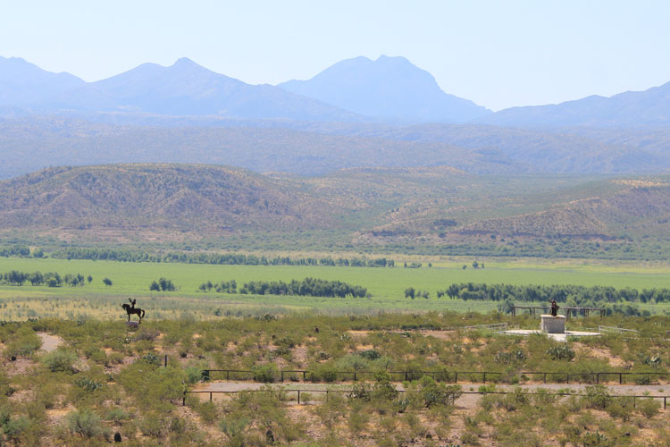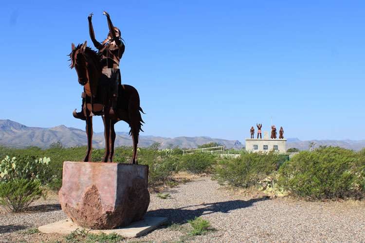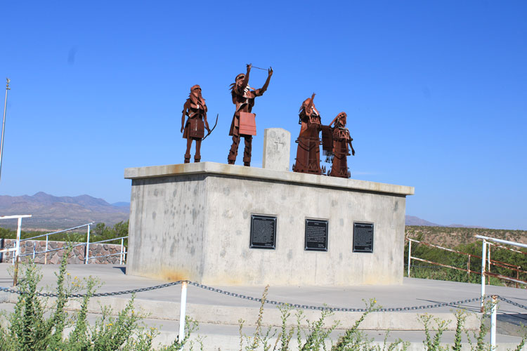 Five metal statues that represent an Apache warrior and an Apache family are the central parts of the monument. Several plaques express tribal members' thoughts on the past, present, and future history of the tribe.