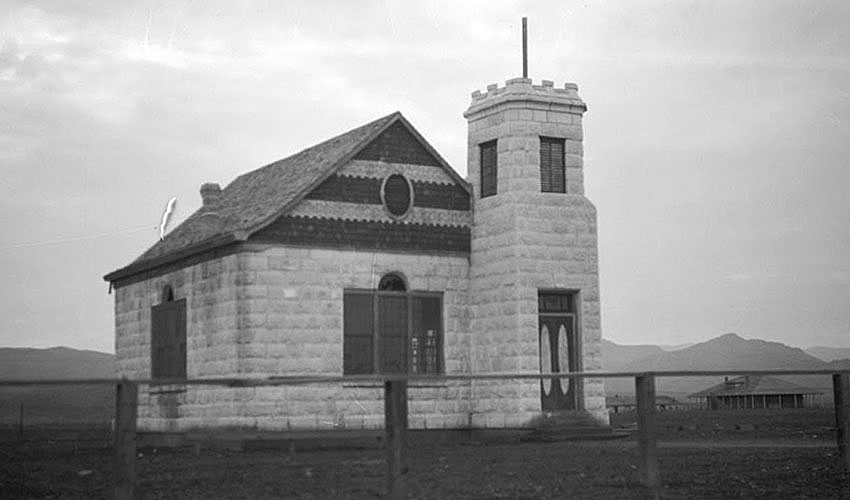 The Tufa Stones from the Lutheran Church at Old San Carlos were incoroporated into the construction of this building that was located a few miles north.