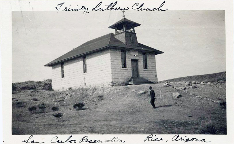 The Lutheran Church at Old San Carlso was of very interesting construction. The material used was Tufa Stone, a volcanic rock that was quarried on the reservation. The stone was strong, lightweight and very easily cut loose from its source. Pretty much every building at old San Carlos that was made from this rock was dismantled and its materials re-used.