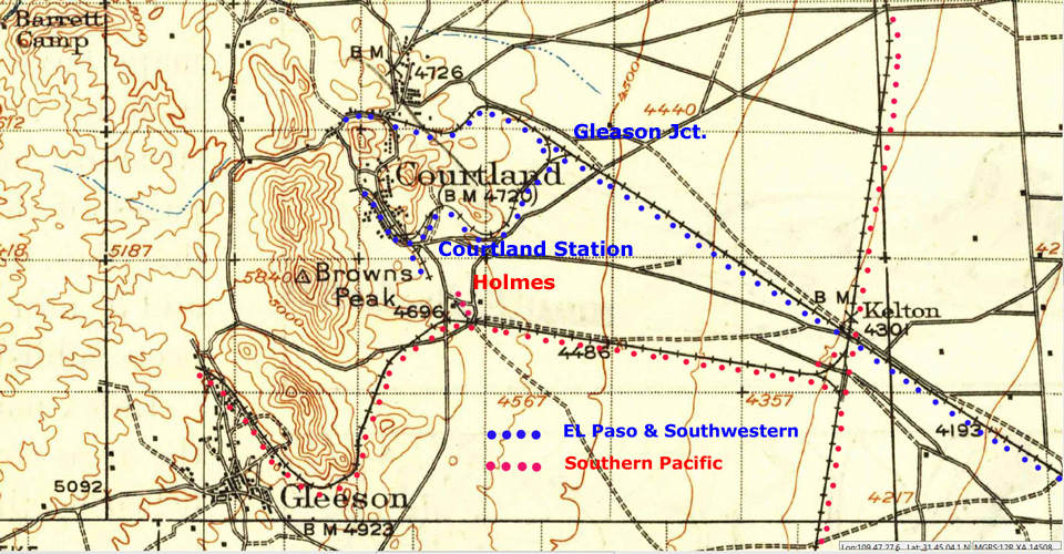 This 1916 map shows the two railroad lines that were installed in 1909 to service the towns of Courtland and Gleeson in southeastern Arizona.