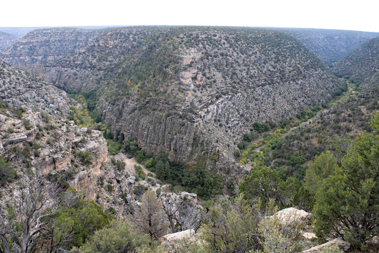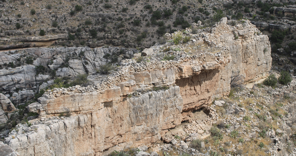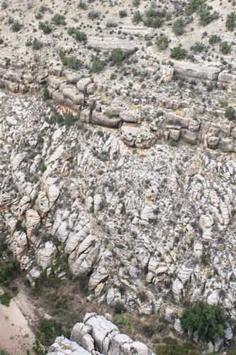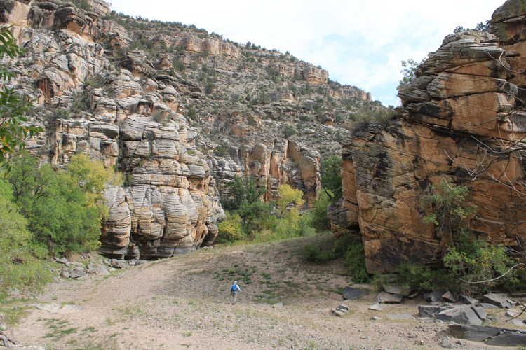 At the canyon rim, there is a large cliff top ruin. An article published in 2007 noted that structures similar to these were used by the native peoples who lived along the creek from 1150 to 1250 AD. These sites were thought to have been defensive fortifications that protected the inhabitants from the effects of conflict and invasion. The structures in East Clear Creek were abandoned sometime after 1250 AD. A pdf of the magazine article can be found here: Archaeology Southwest Magazine