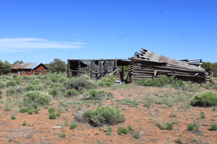 Near Red Hill, there is a section of private property at which there are several buildings that are fading away.