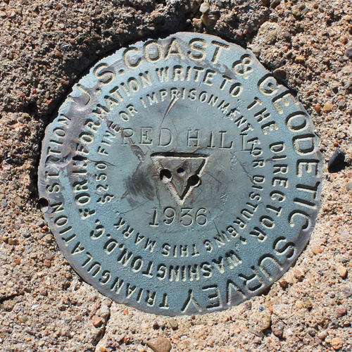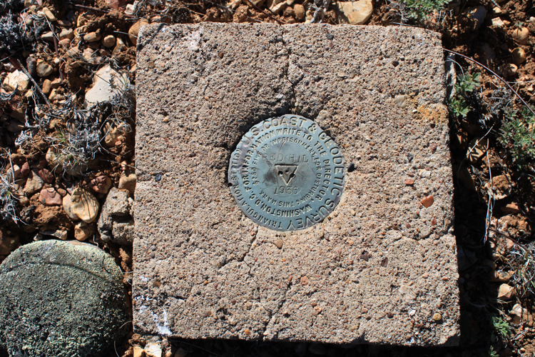 On our way south to the trailhead for the stream gage trail, we took a short hike to locate the benchmark identified on the maps as "Red Hill". The marker was set in 1936, Two reference disks that point to the benchmark were also found. It was interesting that the Red Hill Benchmark was not located on the actual peak named Red Hill.