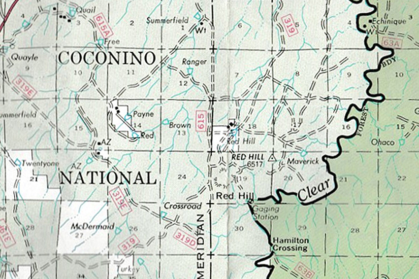 The roads near Red Hill are primitive. If wet, these trails could be challenging to navigate. These days, not all are open to vehicular travel. There is a Motor Vehicle Use plan in effect in this area.