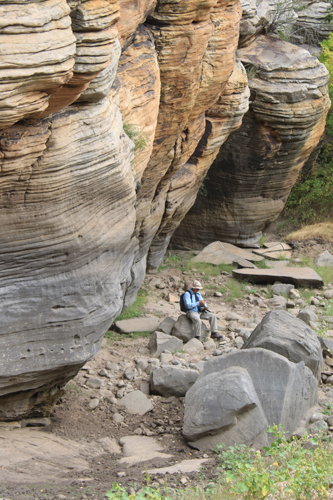 Staining on the rocks would seem to indicate that there is often a deep pool at this location. We have since learned that it is not so unusual for this section of the creek to be dry.