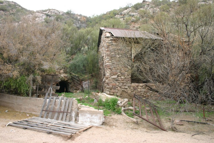 Concrete wall helped to divert the flood waters of the wash.