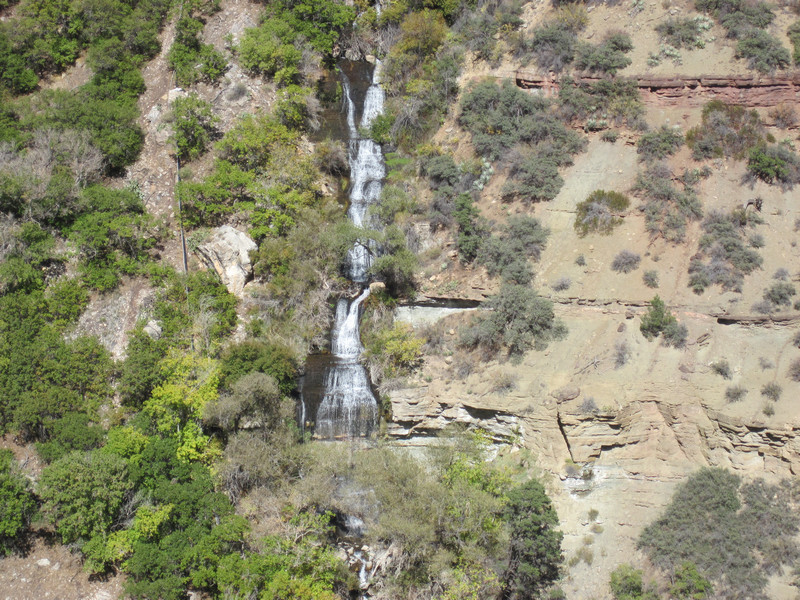 Zoom view of Roaring Springs. Out of sight below the photo is the pump house and a heliport. Signs of the pipeline to the South Rim can be seen as you hike along the trail.