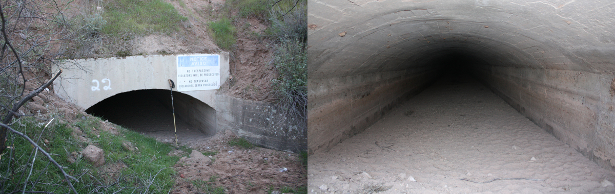 The downstream side of the Wherli Tunnel 3A is still open. The impressions of the wooden form boards in the concrete are interesting.