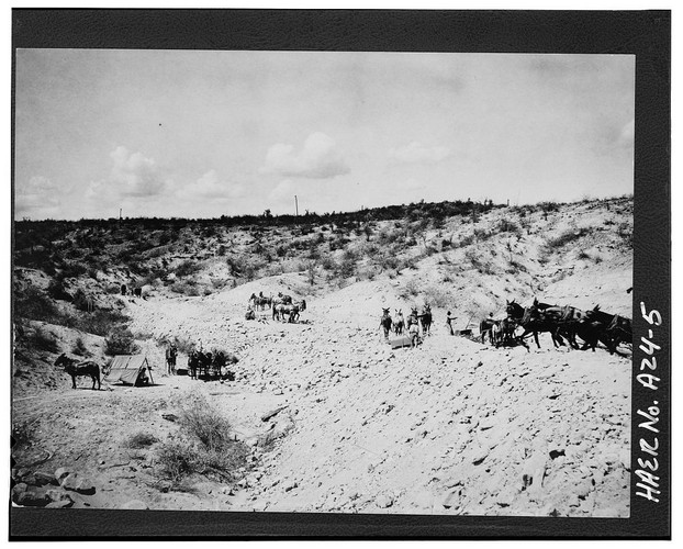 Multiple teams of scrapers at work. At one point there were 800 people involved in the construction of the Power Canal.