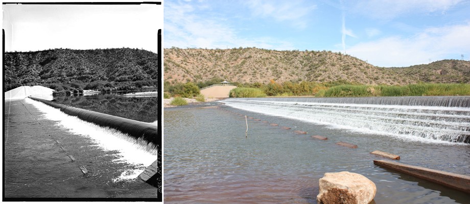 The photo on the left was the dam's profile in 1984. Its outline today in 2011 is quite different. Modifications were done to the dam in 1989 to lessen the effects of undertow created by the down fall of water off the old dam.