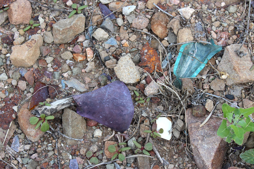 Glass and Ceramic shards seen on the trash dump at Rosemont Hotel
