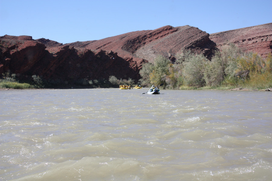 Around mile 10, the nature of the river canyon began to change. The sides began to close in and the canyon became much deeper. The geology changed. There were now many tilted layers of red and gray rocks.