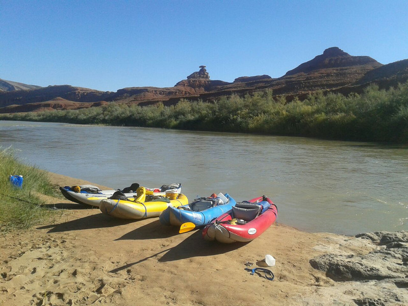 First Day take-out near river mile 23. The spectacular Mexican Hat Rock is in the distance.