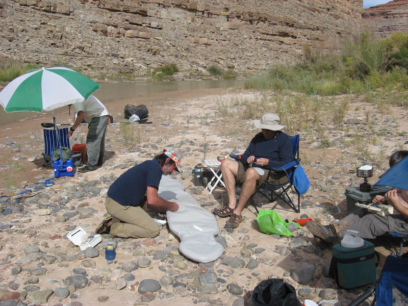 The only boat repair necessary on the trip. One of the Sea Eagles developed a pin-hole leak in its air floor.