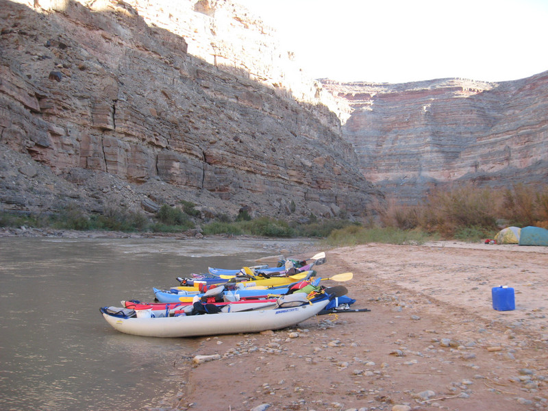 Take-out and Camp Site for days 3 and 4. This is at river mile 45, the base of the Honaker Trail, an old prospector's trail that leads to the canyon rim 1200' above the river.