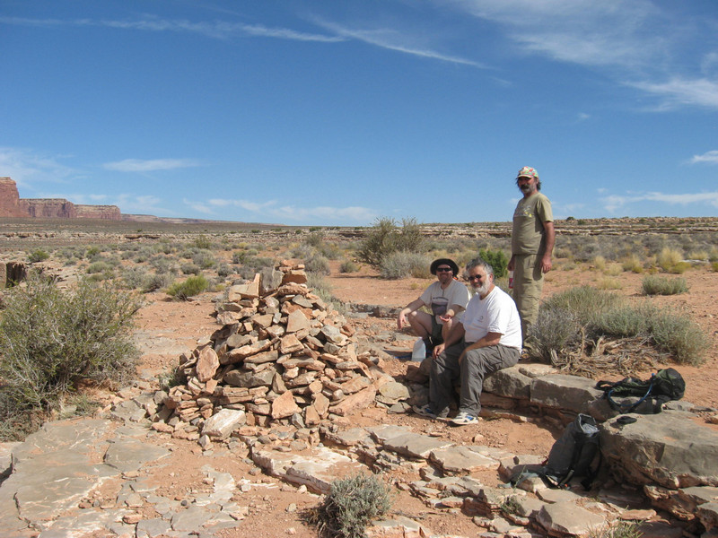 Cairn that marks the top of the Honaker Trail. There is a rough road that comes to this point. The Honaker Trail is one of the few places to exit the lower San Juan Canyon by foot.