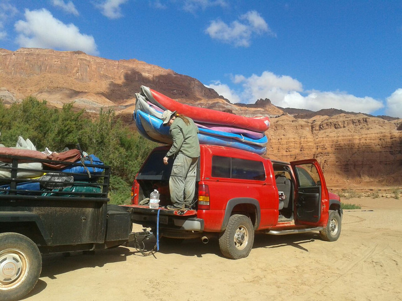 We had hired a shuttle driver to bring our truck out and leave it for us. Eight guys had a lot of gear to get back to Bluff.