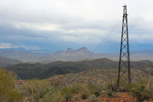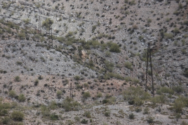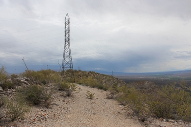 A few miles after the crossing of O'Carroll Canyon, the trail passes under the active power line from Coolidge Dam at the San Carlos Reservoir. This power line was constructed in 1929 or 1930 to supply power to the mining operations at Hayden. The growth of those operations and the surrounding area had apparently created a demand for electrical power that exceeded the capacity of the power plant in Hayden.