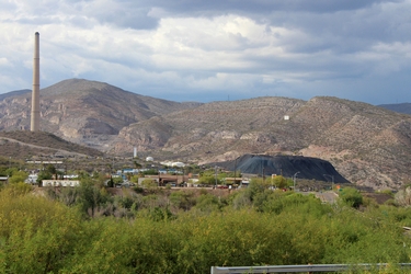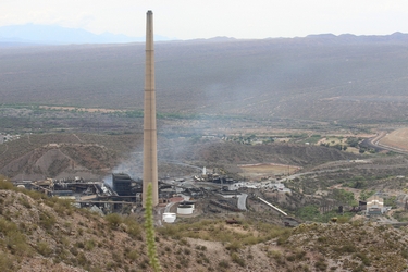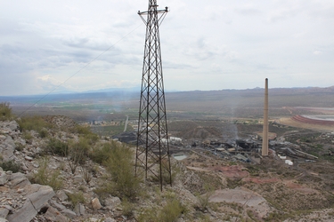While I had come to the ridge line to check out the powerline towers, I could not help but be impressed with the views down below! When I was growing up in the area in the 1960's, there were two mining companies in operation adjacent to one another. Today, those operations have been combined into one company. The photo on the left is the ASARCO copper smelter. The photo on the right shows the crushing and milling faciliites. In the 1960's, the crusher and the mill were owned and operated by the Kennecott Copper Company. They had their own smelter. When the two companies were consolidated, the Kennecott smelter was taken down. Only its smokestack remains. The ore that is processed at Hayden comes from the Ray Mine by train.