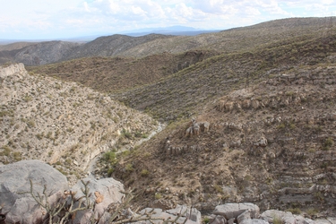 Up the Gila River canyon a few miles north of Winkelman a 4wd road takes off from Highway 77 at O'Carroll Canyon. A spur off of that trail crosses the canyon and meanders several miles back to the south toward the skyline above Hayden. That is the route that I took. The photo on the left was taken from the spur road looking back down toward the crossing of O'Carroll Canyon. The photo on the right is looking up into the gorge of O'Carroll Canyon.