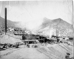 These views of the Christmas Mine are probably from the early 1900's. The smelter is reported to have operated from 1905 to 1907. The steam boilers can be seen to be in operation.