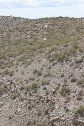 This is the view looking down on to the skyline ridge to the south. In the very far distance are the Catalina Mountains near Tucson. The smokestack is at the ASARCO smelter and is listed at 1001' tall. It is the tallest structure in Arizona. The towers that were my destination are just visible.