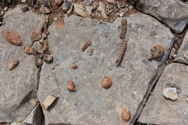 There were many fossil shells and bits of crinoid stems seen in the rocks along the skyline ridge.