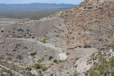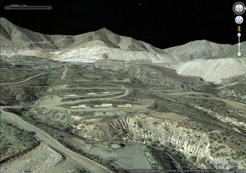 Not much remains of the old Christmas mine/town site today. The town was pretty much destroyed when operations were converted to open pit extraction. The site is very strongly posted against any entry. No trespassing signs are everywhere. This photo is a Google Earth View of the site as it now appears.