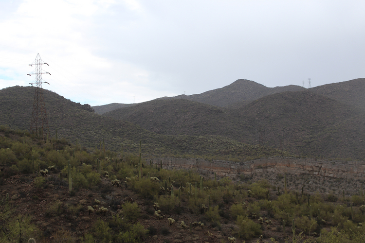 This is a view northward of the San Carlos powerline. The old Christmas mine is on the other side of the skyline ridge.