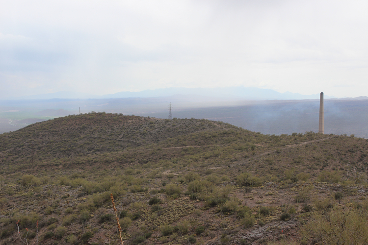 View looking south to the ridgeline above Hayden Arizona. The powerline towers are just visible on the crest.