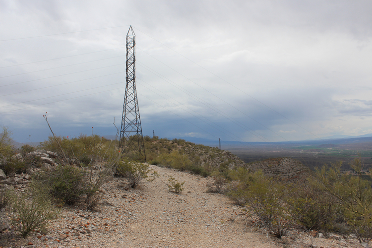 A tower of the San Carlos Power Line. This is on the skyline