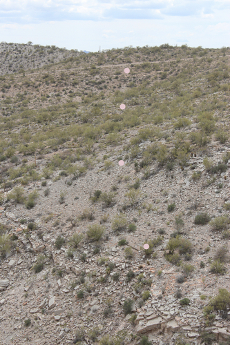 The brown dots mark the line of fallen wooden poles