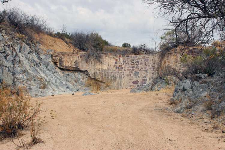 Using the exposed bedrock help create a dam across the wash