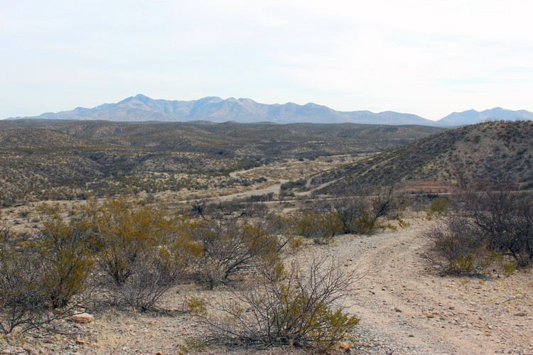 View upstream into Tres Alamos Wash. The Little Dragoon Mountains
